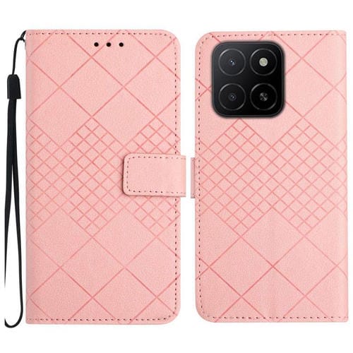Funda de Cuero con Textura de Cuadrícula Rómbica para Honor X8C 4G (Rosa)