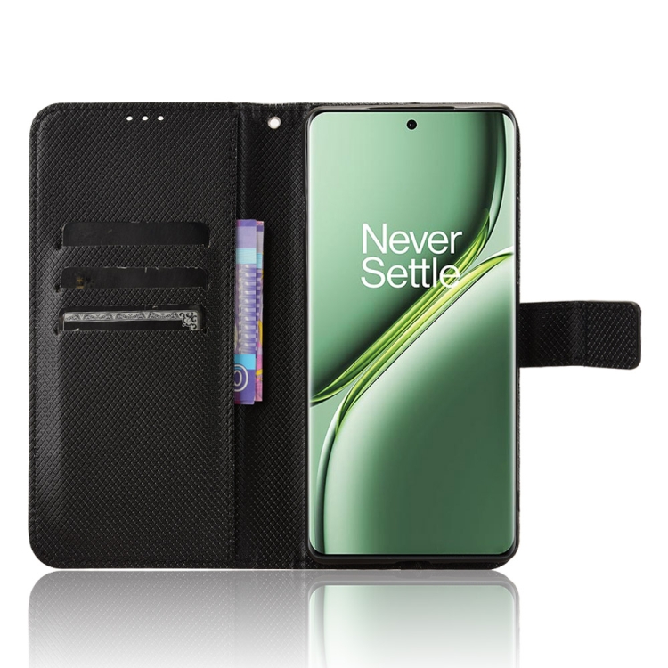Funda de Cuero con Textura de Diamante para OnePlus Ace 3 Pro (Negra)