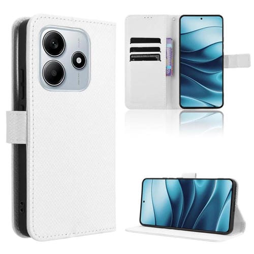 Funda de Cuero con Textura de Diamante para Redmi Note 14 4G Global (163,25mm) (Blanco)