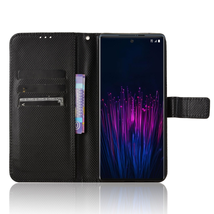 Funda de Cuero con Textura de Diamante para Teléfono HTC U24 Pro (Negro)