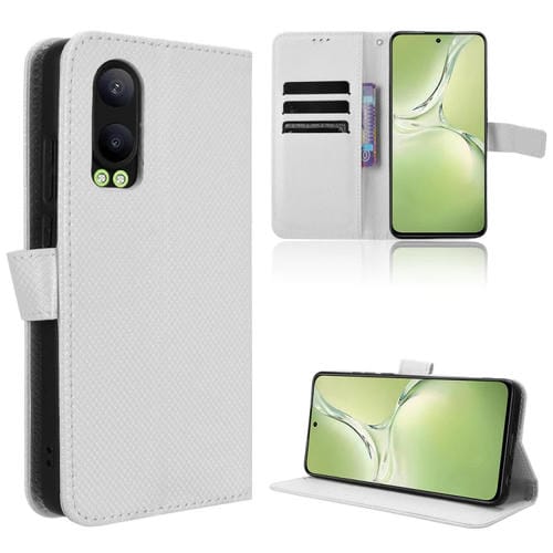 Funda de Cuero con Textura de Diamante para Oppo K12X 5G / Oneplus Nord Ce4 Lite 5G (Blanca)