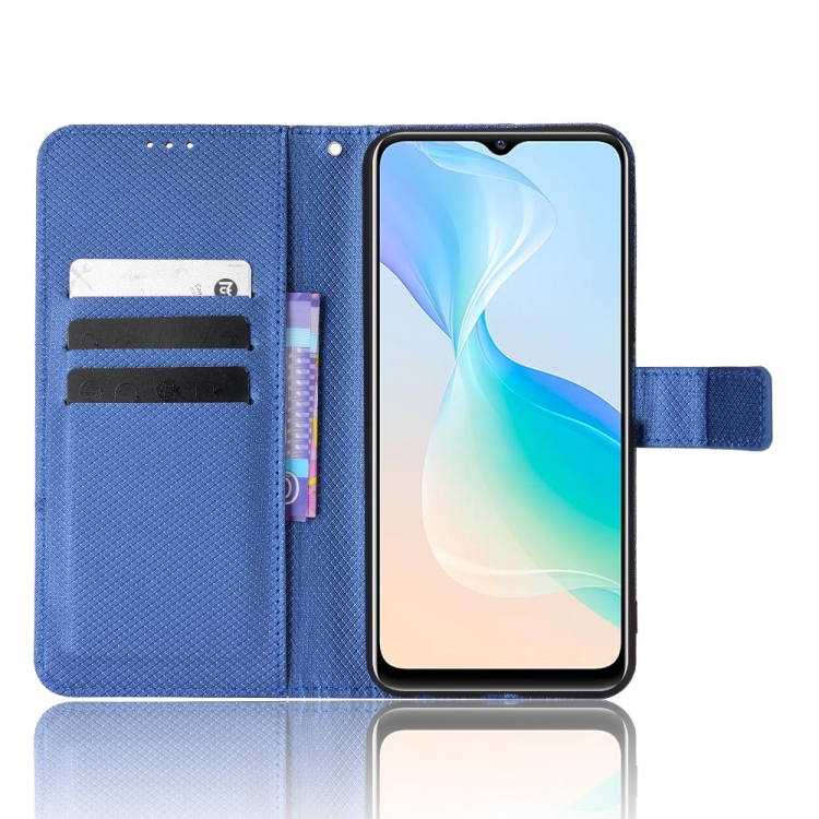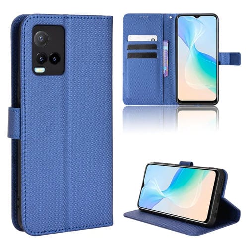 Funda de Cuero con Textura de Diamante para Vivo Y21 2021 / Y21S (Azul)
