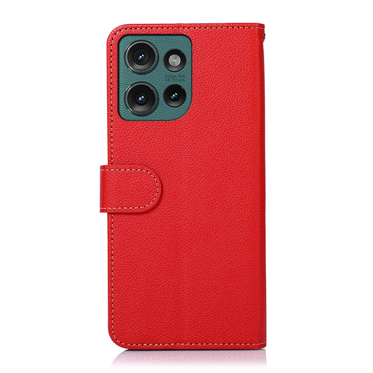 Funda Cuero Textura Lichi Khazneh RFID para Motorola Edge 50 (Rojo)