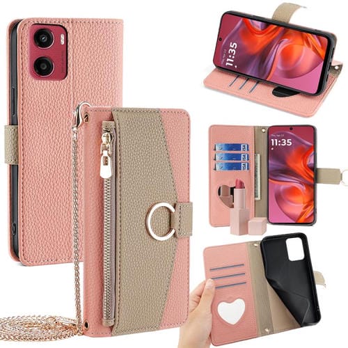Funda de Cuero con Textura de Lichi para Motorola Moto G05 (Rosa)