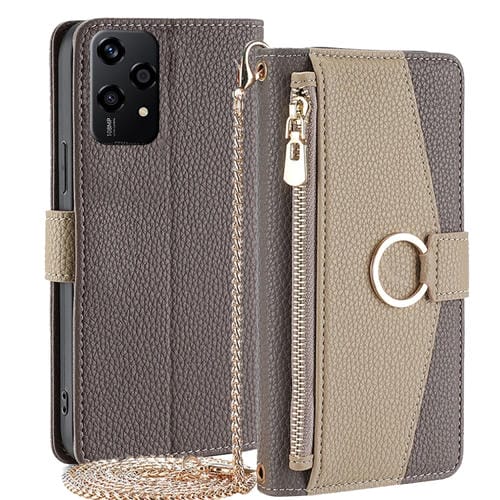Funda de Cuero Textura de Lichi para Honor 200 Lite 5G con Diseño Cruzado (Gris)
