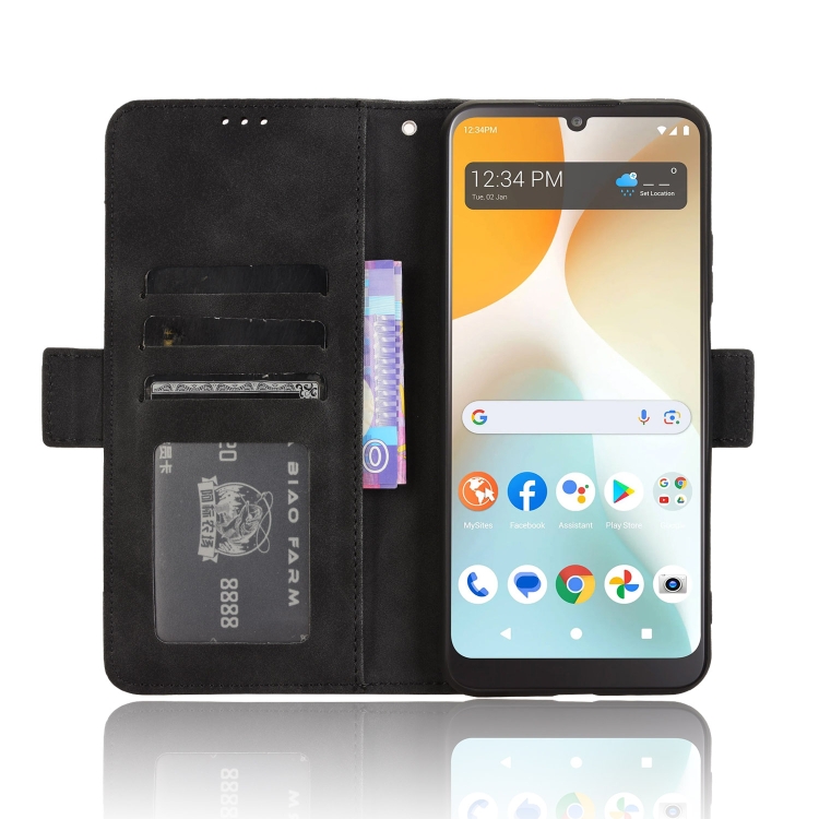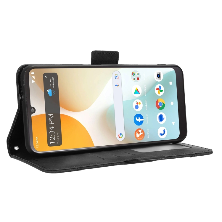 Funda de Cuero para BLU View 5 Pro con Textura de Piel de Becerro y Ranuras para Tarjetas (Negro)