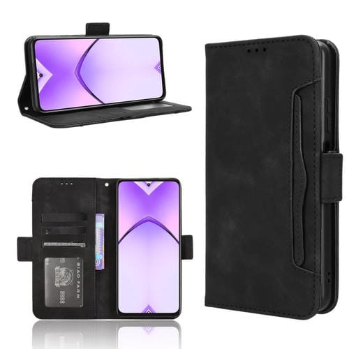 Funda de Piel con Textura de Becerro y Ranuras para Tarjetas para Oppo A3 Pro 5G (Negro)