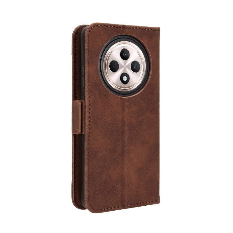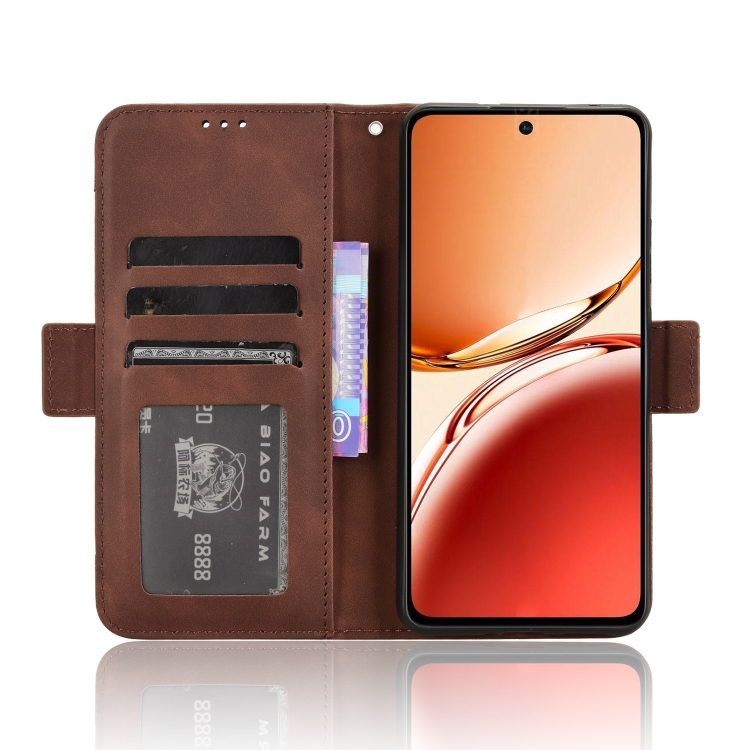Funda de Piel con Textura de Becerro y Ranuras para Tarjetas para Oppo Reno12 F 5G (Marrón)