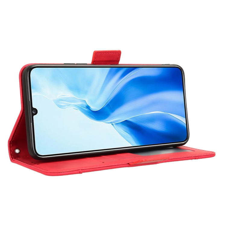 Funda de Cuero con Textura de Piel de Becerro y Ranuras para Tarjetas para Oukitel C51 (Rojo)