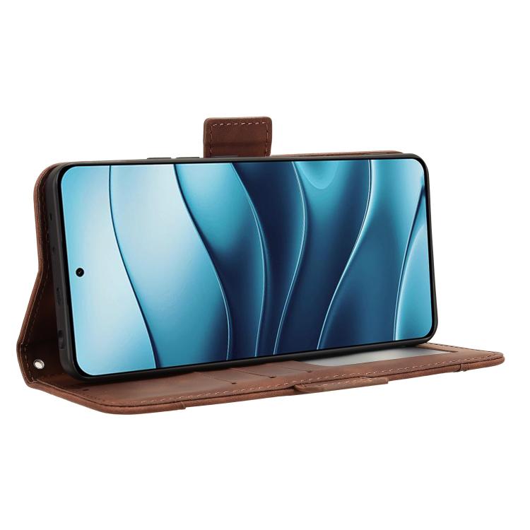 Funda de Piel con Textura de Becerro para Redmi Note 14 4G Global (163,25mm), Ranuras para Tarjetas (Marrón)