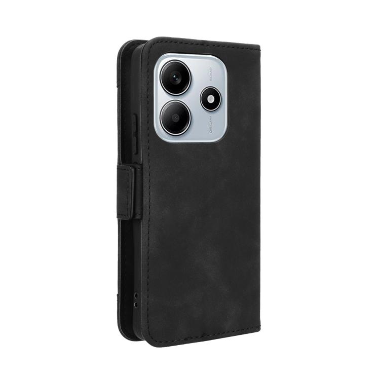 Funda de Piel Sintética con Textura de Becerro para Redmi Note 14 4G Global (163,25mm), Ranuras para Tarjetas (Negro)