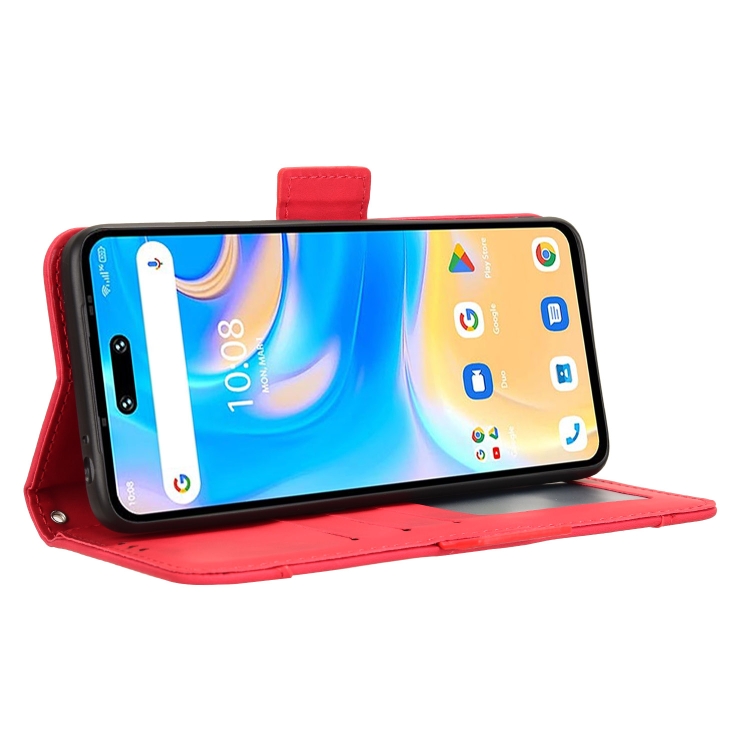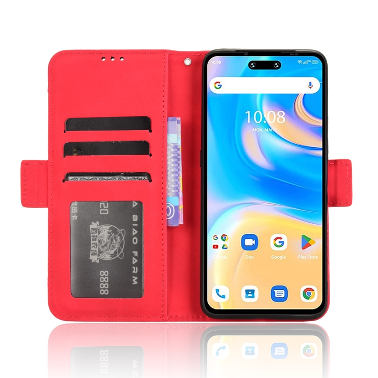 Funda de Cuero para Umidigi G6 5G con Textura de Piel de Becerro y Ranuras para Tarjetas (Rojo)
