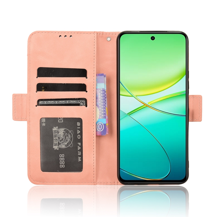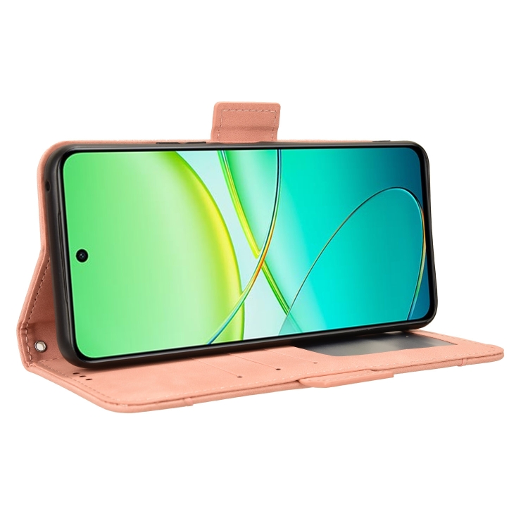 Funda de Piel con Textura de Becerro y Ranuras para Tarjetas para Vivo Y58 5G (Rosa)