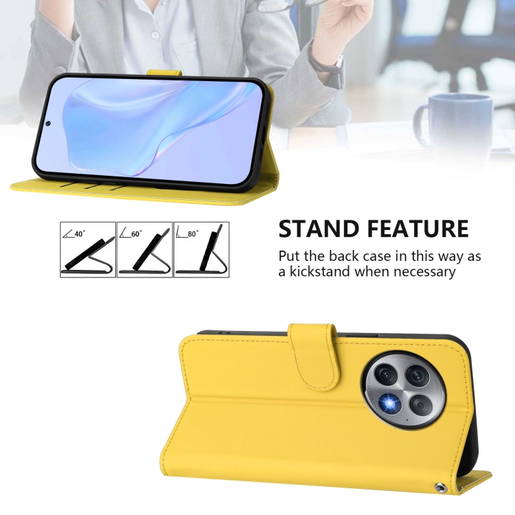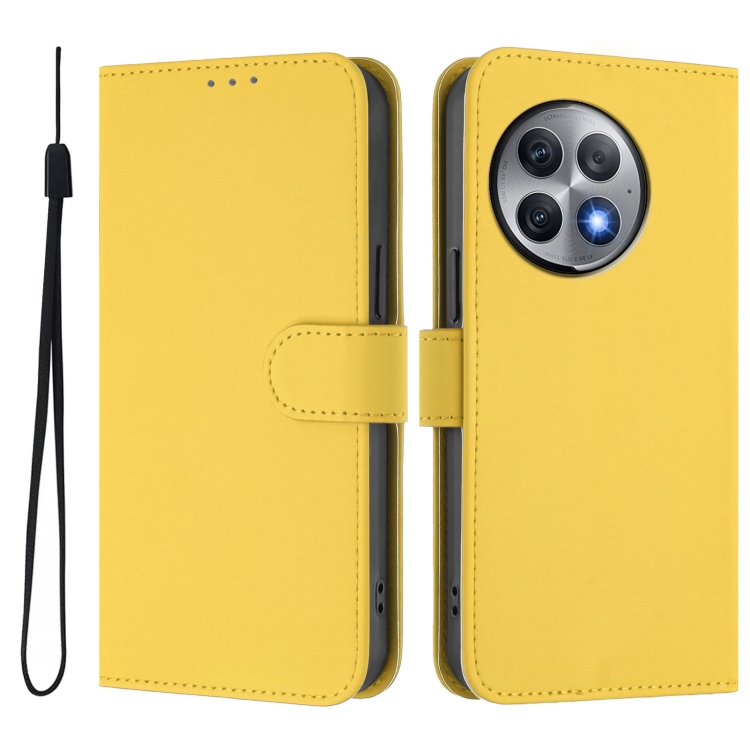 Funda de Cuero Textura Piel para OnePlus Ace 2 Pro 5G con Cordón (Amarillo Limón)
