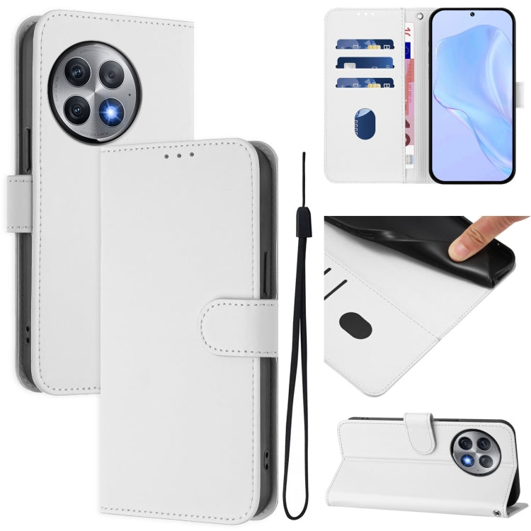 Funda de Cuero OnePlus Ace 2 Pro 5G con Textura de Piel y Cordón (Blanco)