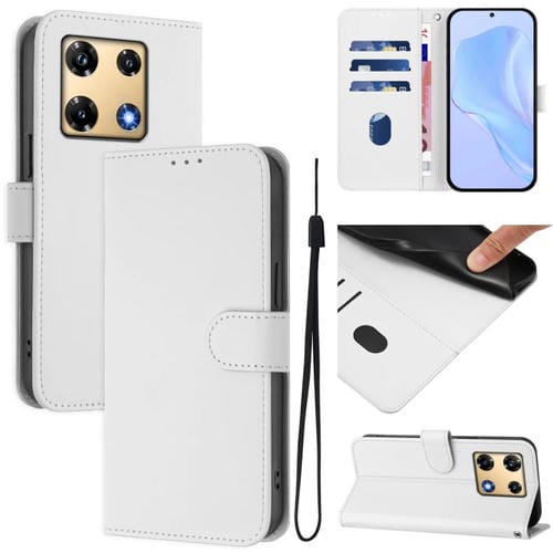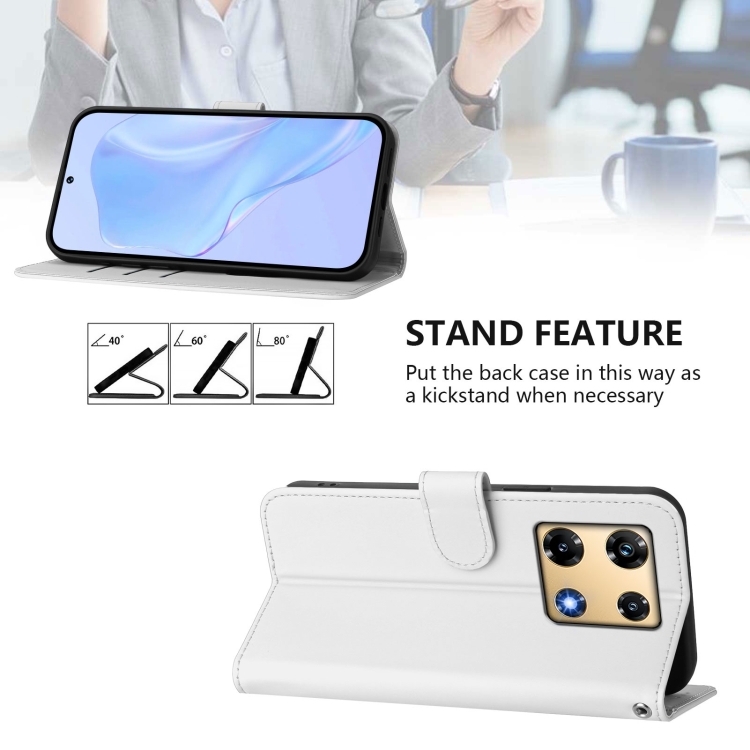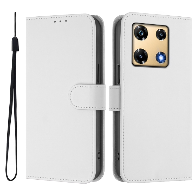 Funda de Cuero para Infinix Note 30 Pro 4G con Textura de Piel y Cordón (Blanco)