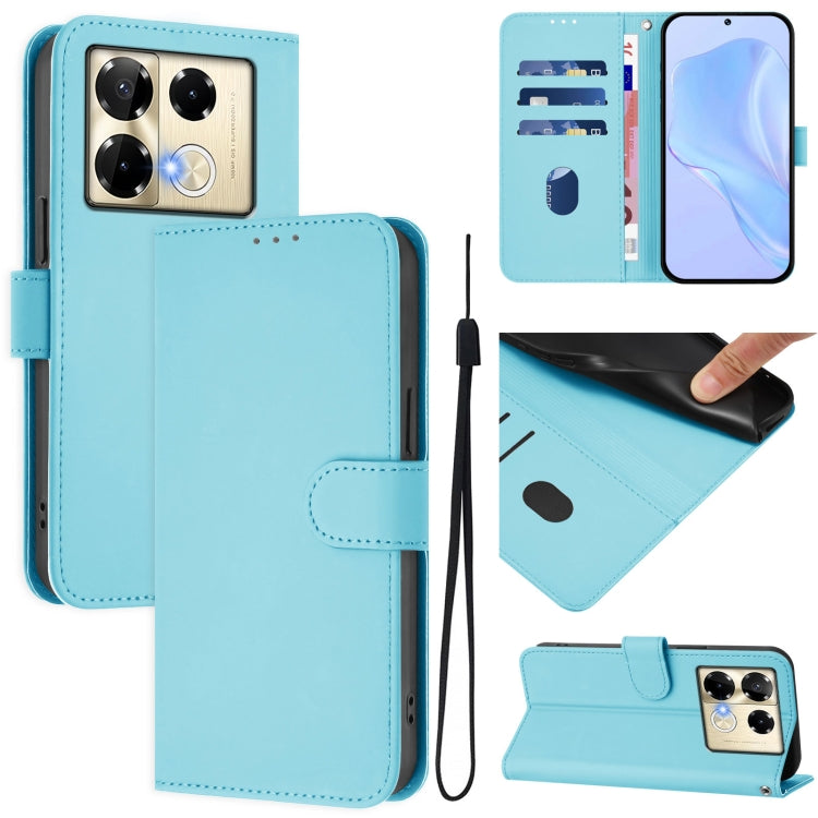 Funda de Cuero para Infinix Note 40 Pro 4G con Textura de Piel y Cordón (Azul Cielo)