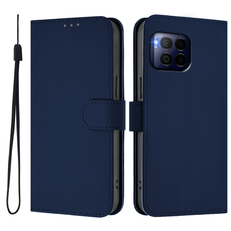 Funda de Cuero para Teléfono T-Mobile Revvl 7 Pro 5G con Textura de Piel y Cordón (Azul Marino)