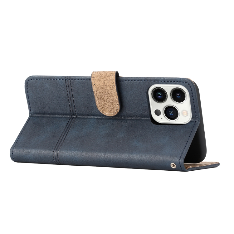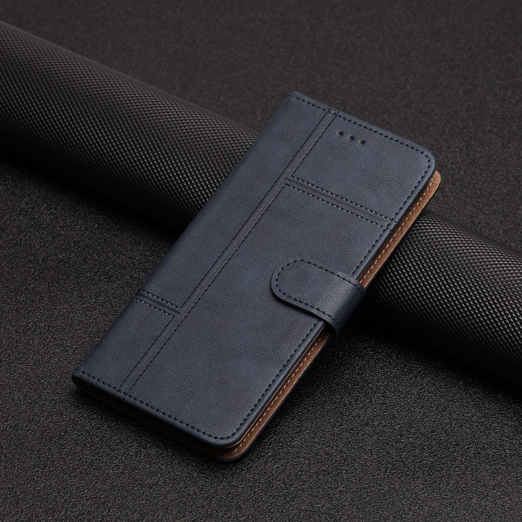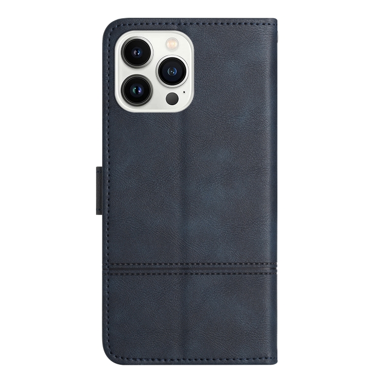 Funda para iPhone 16 Pro Max Cuero Textura Piel de Vaca Costuras (Azul Oscuro)