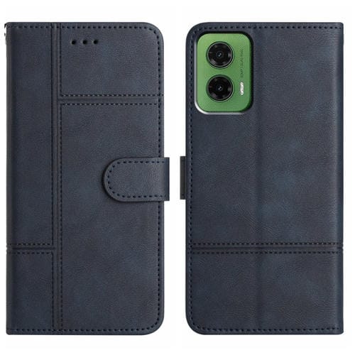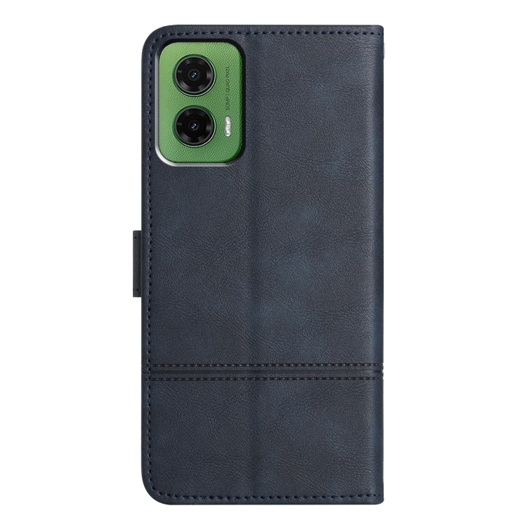Funda de Cuero con Textura de Piel de Vaca y Costuras para Motorola Moto G35 (Azul Oscuro)