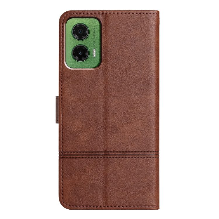 Funda de Cuero con Textura de Piel de Vaca y Costuras para Motorola Moto G35 (Café)