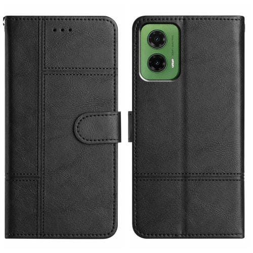 Funda de Cuero con Textura de Piel de Vaca y Costuras para Motorola Moto G35 (Negro)