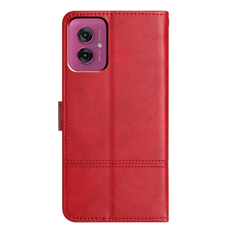 Funda de Cuero con Textura de Piel de Vaca y Costuras para Motorola Moto G55 (Rojo)