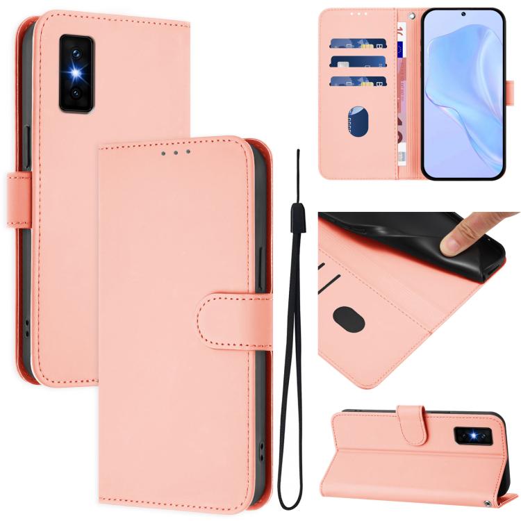 Funda de cuero con textura de piel y cordón para Infinix GT 30 Pro (rosa)