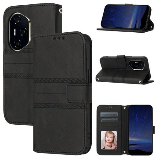 Funda de Cuero para Honor 300 Pro 5G y 300 Ultra 5G con Textura de Piel y Rayas en Relieve (Negra)