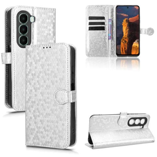 Funda de cuero con textura de puntos de panal para itel A95 5G (plateada)