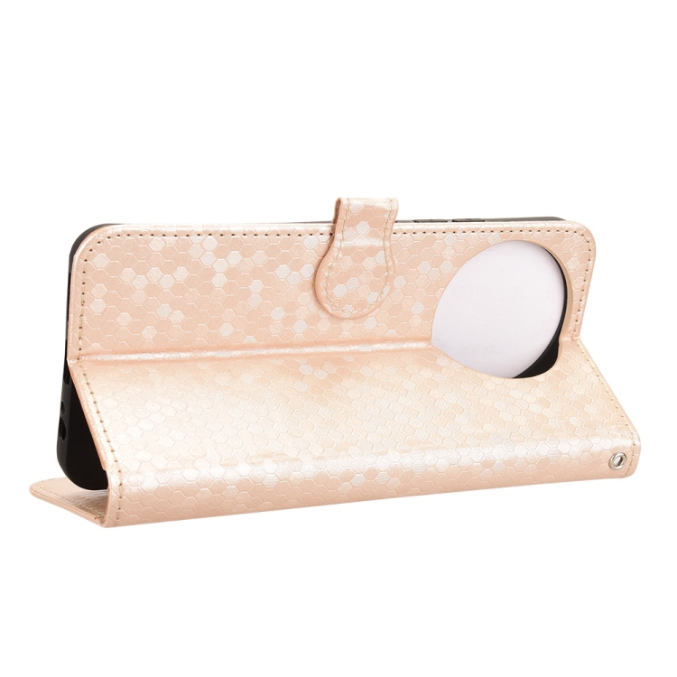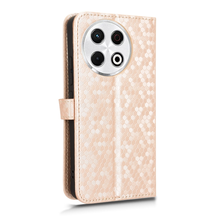 Funda de Cuero para Tecno Spark 30 Pro 4G con Textura de Puntos Panal (Dorada)