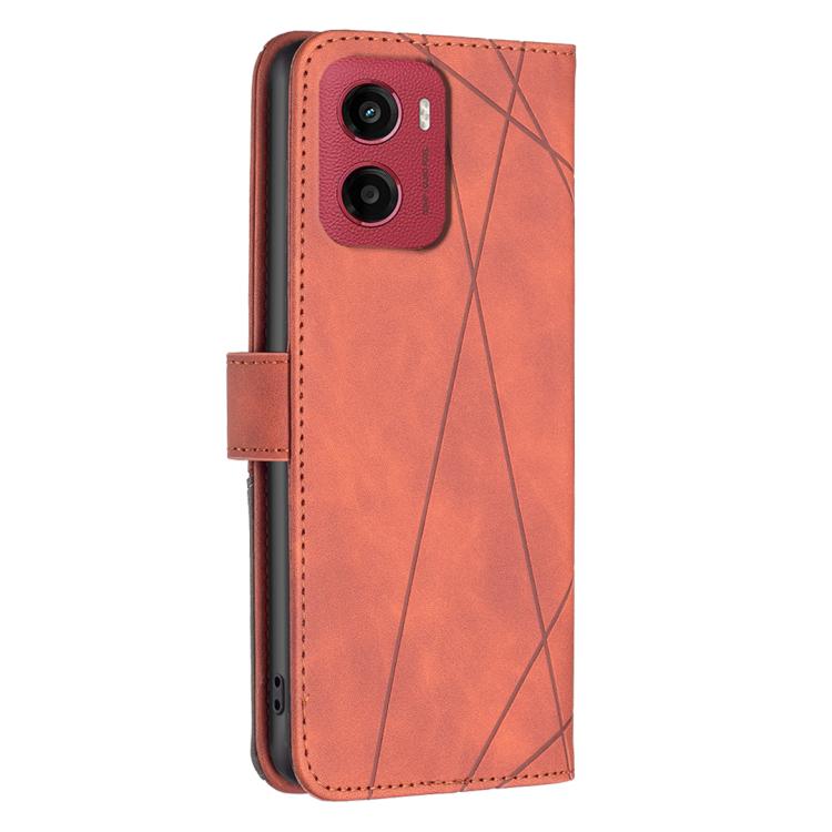 Funda de Cuero Motorola Moto G05 con Textura de Rombos y Hebilla Magnética (Marrón)