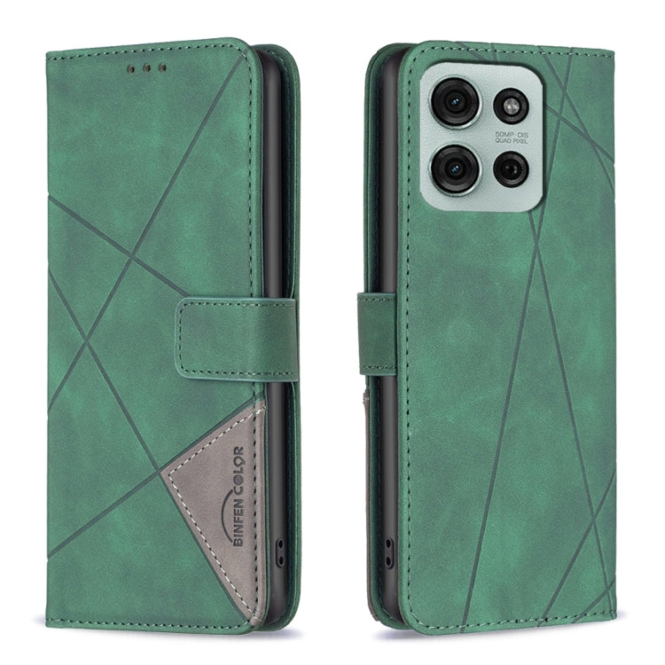 Funda de Cuero para Motorola Moto G75 5G con Textura de Rombos y Hebilla Magnética (Verde)