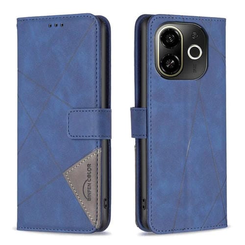 Funda de Cuero con Textura de Rombos y Hebilla Magnética para Tecno Pop 9 5G/Spark 30C 5G (Azul)