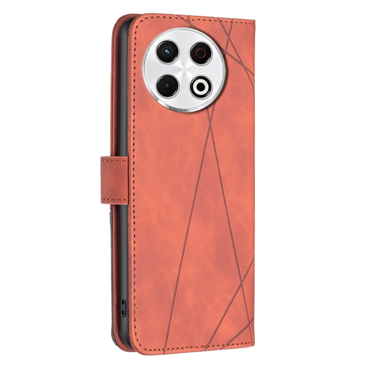 Funda de Cuero para Tecno Spark 30 Pro 4G con Textura de Rombos y Hebilla Magnética (Marrón)