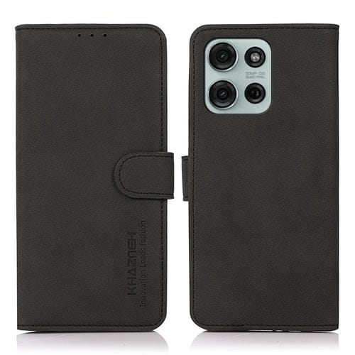 Funda de Cuero Khazneh para Motorola Moto G75 5G con Textura Mate (Negro)