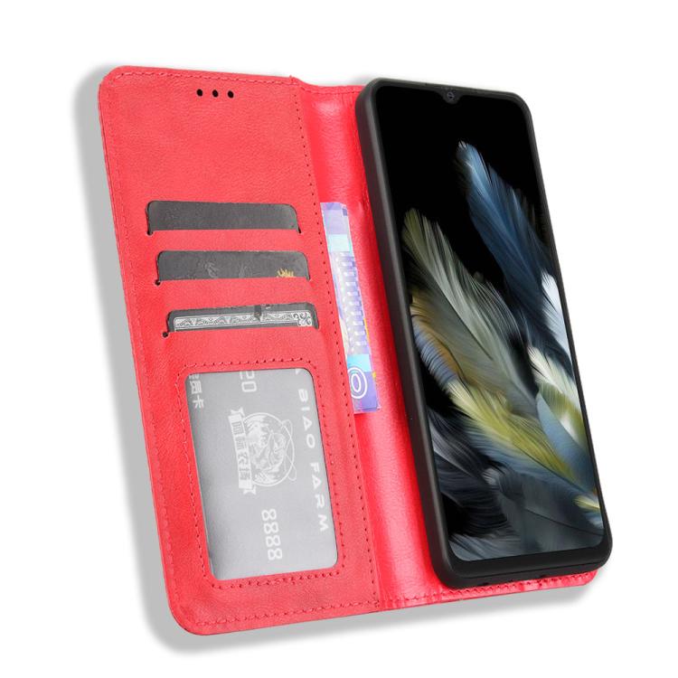 Funda de Cuero con Textura Retro y Hebilla Magnética para BlackView Wave 8 / 8C / Oscal Flat 2 (Roja)