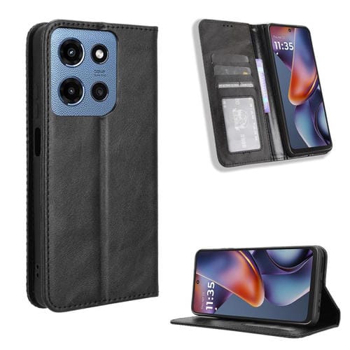 Funda Cuero Textura Retro con Hebilla Magnética para Motorola Moto G Play (2025) (Negro)
