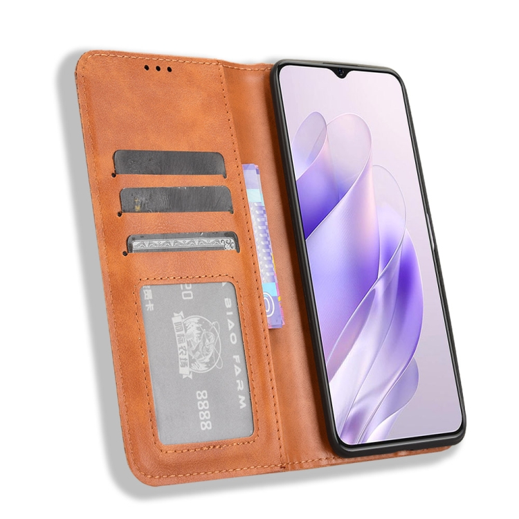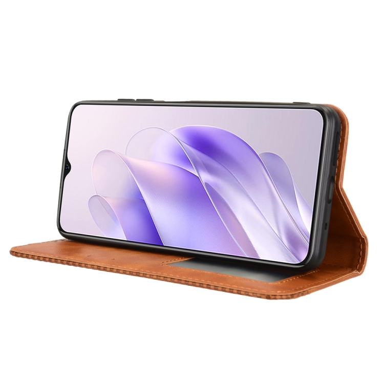 Funda de Cuero para Oukitel C37 con Textura Retro y Hebilla Magnética (Marrón)