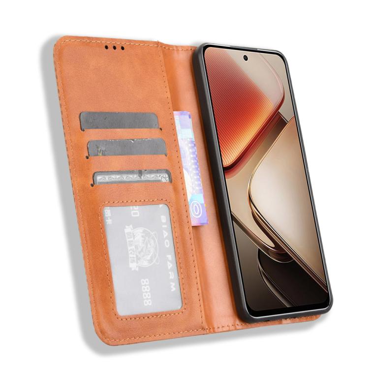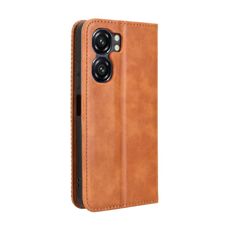 Funda de Cuero Oukitel C58 y C58 Pro Textura Retro Hebilla Magnética (Marrón)
