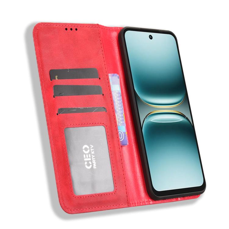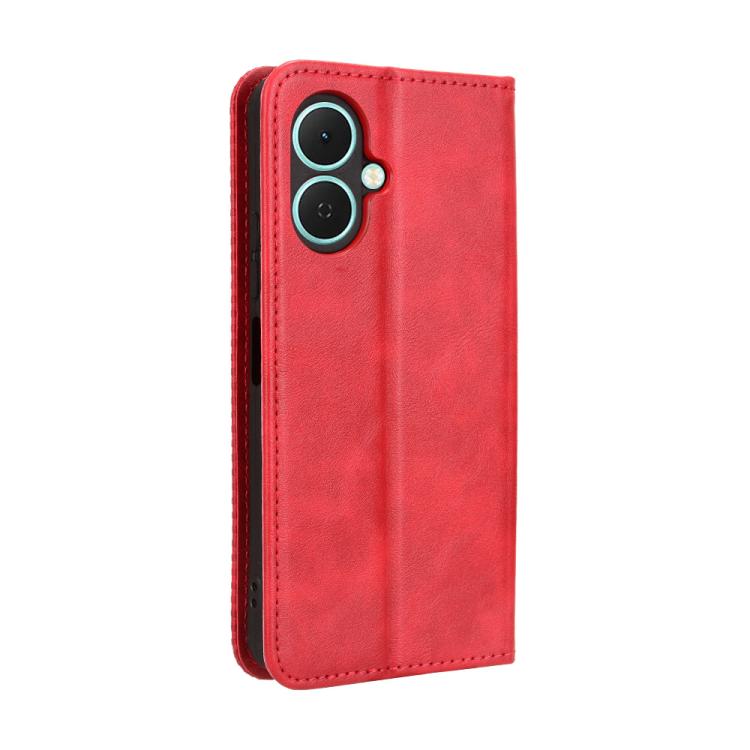 Funda de cuero con textura retro y hebilla magnética para Tecno Pova 7 4G (roja)