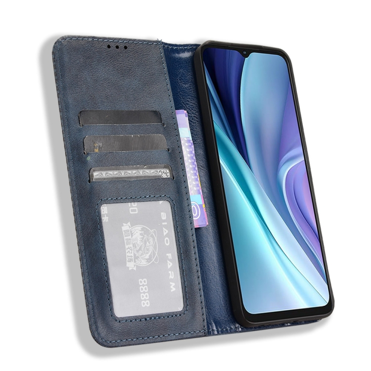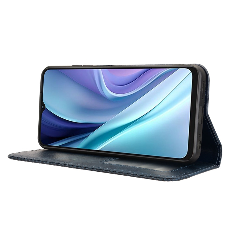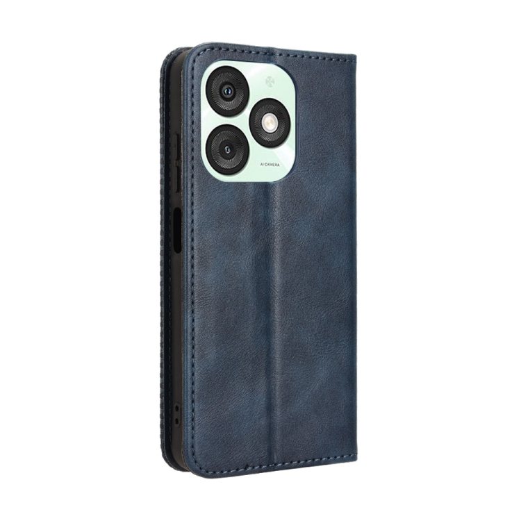 Funda de Cuero Itel A50 con Textura Retro y Hebilla Magnética (Azul)