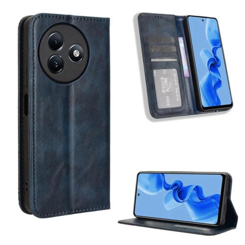 Funda de Cuero Itel S24 4G S667Ln con Textura Retro y Hebilla Magnética (Azul)