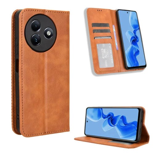 Funda de Cuero Itel S24 4G S667Ln con Textura Retro y Hebilla Magnética (Marrón)
