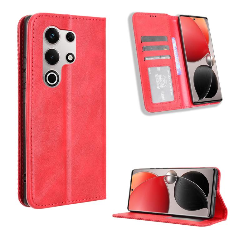 Funda de Cuero Itel S25 Ultra 4G Textura Retro con Hebilla Magnética (Rojo)