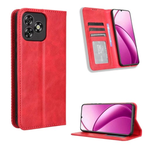 Funda de Cuero con Textura Retro y Hebilla Magnética para Oukitel C53 (Rojo)