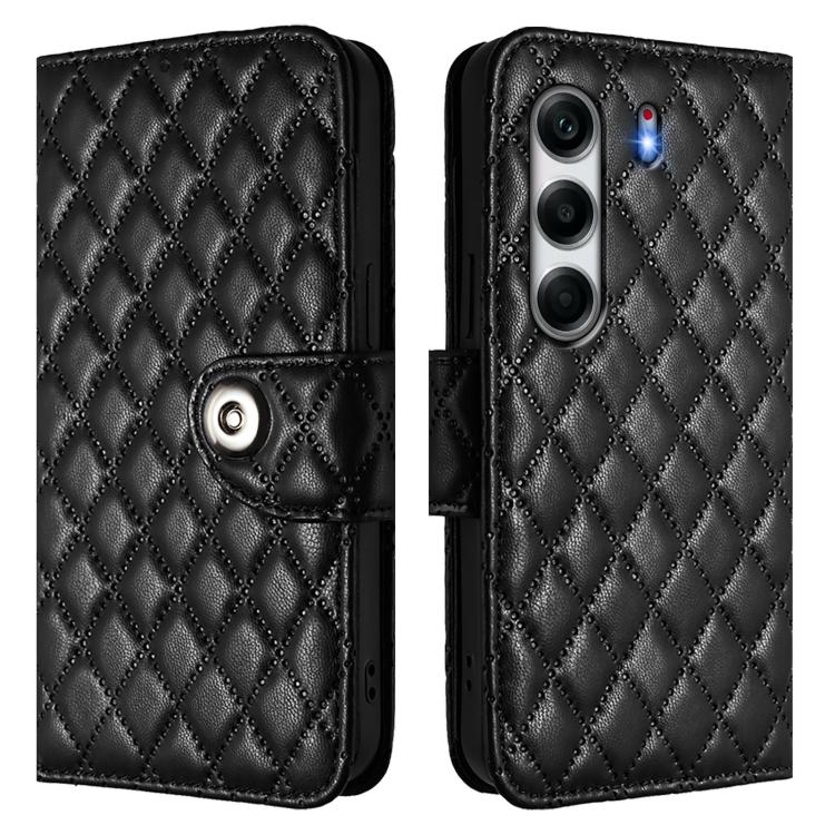 Funda de Cuero con Textura Rómbica y Cordón para Tecno Camon 40 4G (Negro)