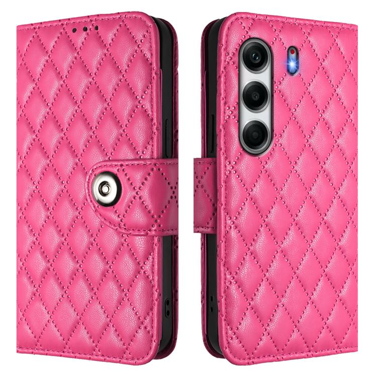 Funda de Cuero con Textura Rómbica y Cordón para Tecno Camon 40 Pro 4G (Rosa)