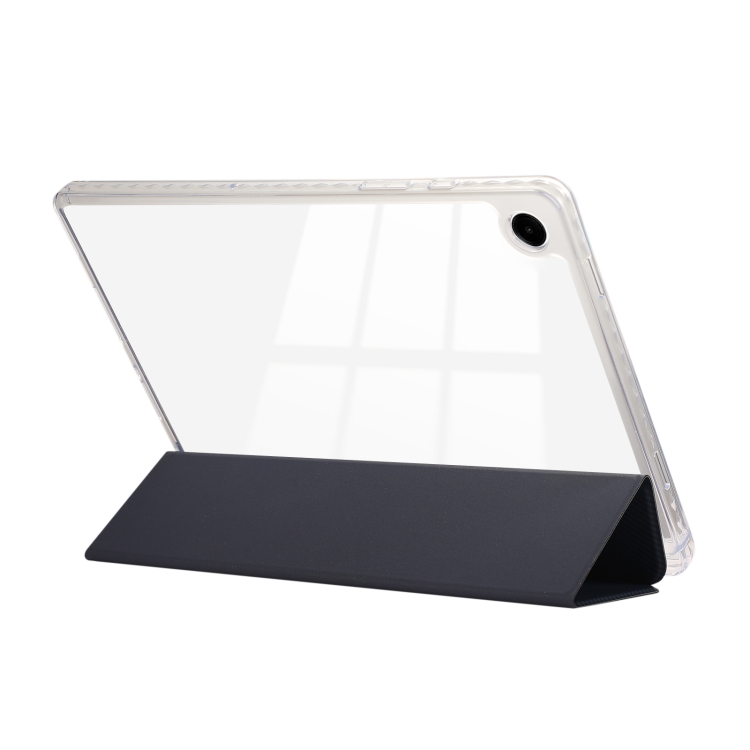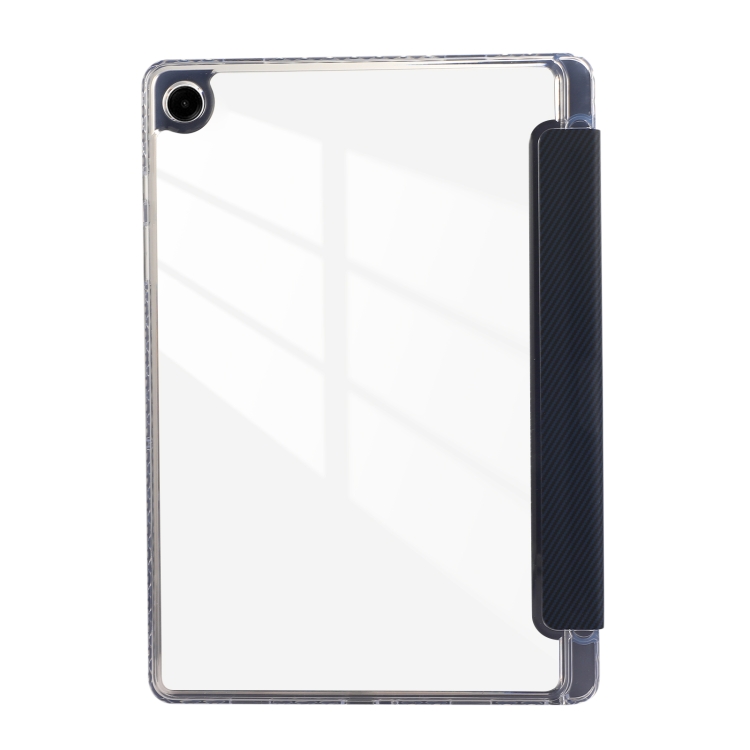 Funda Cuero Samsung Galaxy Tab A9+ Tres Pliegues Acrílico Fibra Carbono (Azul Oscuro)