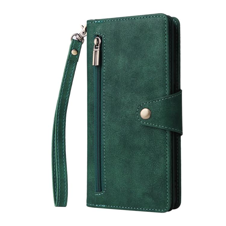 3. Funda tipo cartera con cremallera: Combinación de cartera y funda para celular, con ranuras para tarjetas de crédito e identificación, puede usarse como billetera para guardar múltiples tarjetas de crédito, efectivo, identificación y dinero.